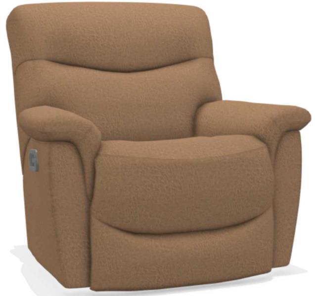 The James Power Rocking Recliner with Headrest has a sculpted-bucket chaise seat and legrest create a continuous zone of comfort in the reclining position. This updated model features a side-mounted control panel that allows you to adjust the back, legrest, headrest and lumbar for an unlimited number of relaxing positions. Plus, a USB charging port and two memory settings that save your favorite reclining positions. When you’re not reclining, it’s a relaxing rocker with a smooth, graceful motion.
