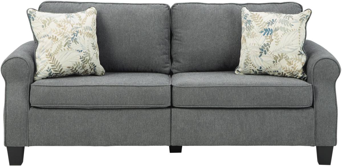 Frame constructions have been rigorously tested to simulate the home and transportation environments for improved durability. Frame components are secured with combinations of glue, blocks, interlocking panels and staples. Seats and back spring rails are cut from mixed hardwood and engineered lumber. Stripes and patterns are match cut. All fabrics are pre-approved for wearability and durability against AHFA standards. Cushions are constructed of low melt fiber wrapped over high quality foam. Constructed with a platform seat foundation. Toss Pillows with Welts.