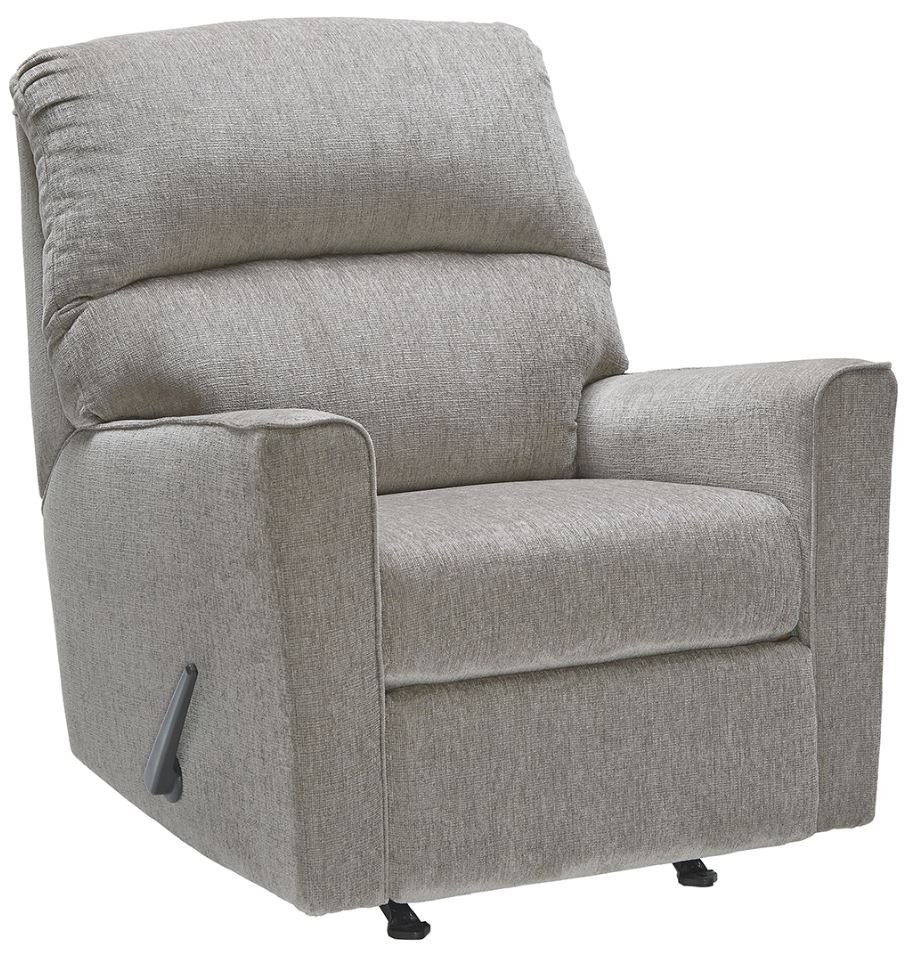 If style is the question, then this rocker recliner is the answer. Clean-lined profile is beautifully contemporary. Plush chenille fabric and plump cushioning make it so easy to comfortably kick up your heels. Richly neutral hue complements a variety of decor.Read More