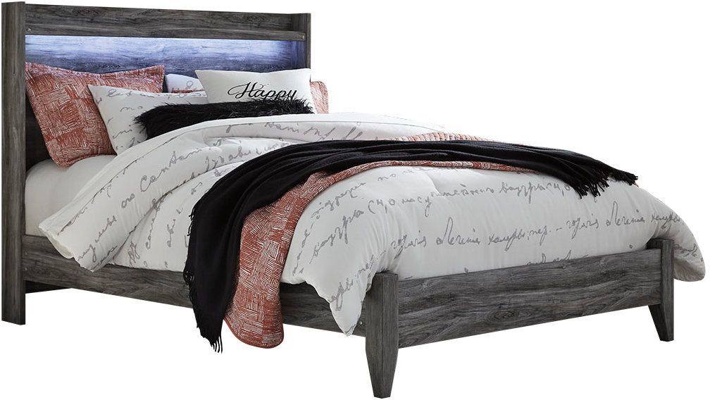 Rest in the casually cool style of this king panel bed. Its driftwood and smoky finish give this bed an easy-going vibe that's perfect for creating a relaxed getaway in the room. Clean lines and modern charm blend for a fuss-free look. Mattress and foundation/box spring available, sold separately.Read More