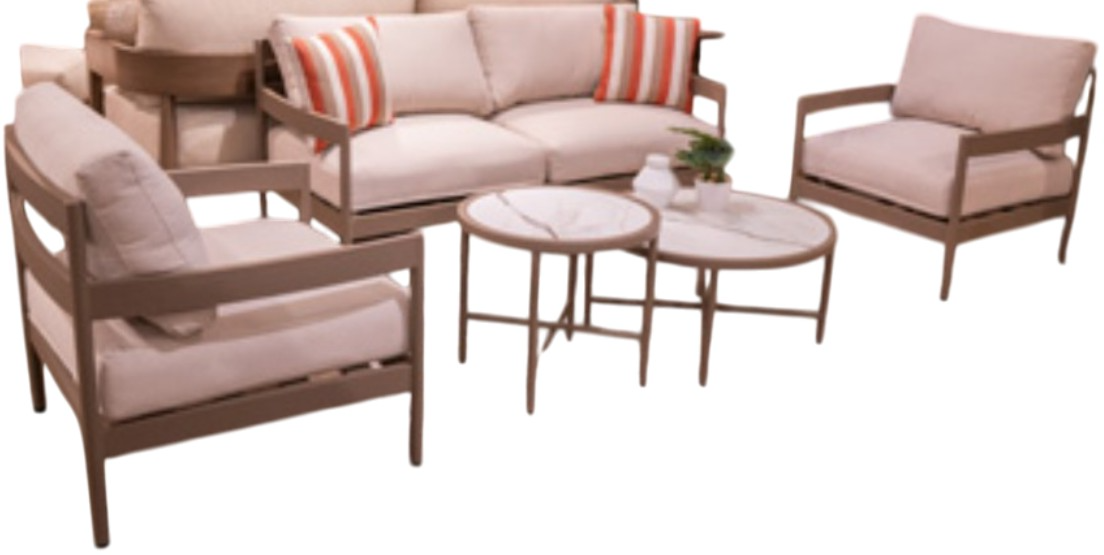 Indulgently comfortable furniture shouldn't be limited to inside spaces. Create your own outdoor oasis with this 5-piece outdoor ensemble. A study in form and function, the clean-lined, durable aluminum frames stand up to the elements for many seasons of fun in the sun by the pool or on the deck.Read More