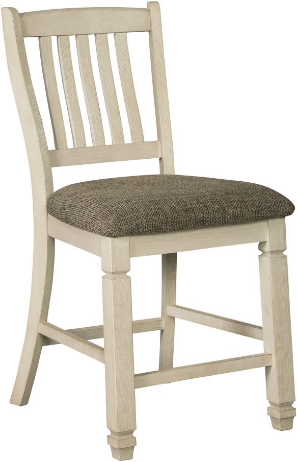 The beauty of this upholstered bar stool is something to savor. Designed to serve up comfort and flair, this rake-back bar stool entices with a cushioned seat covered in a heavy woven fabric that complements the antiqued white finish.Read More